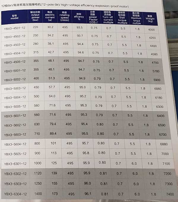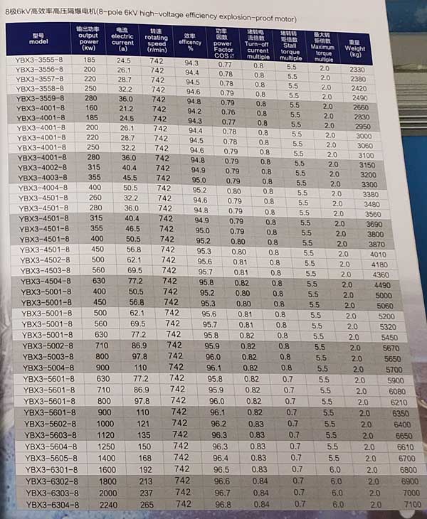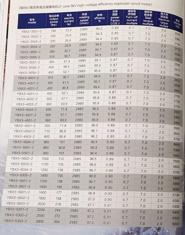 YBX3系列高壓隔爆型三相異步電動機參數(shù)表